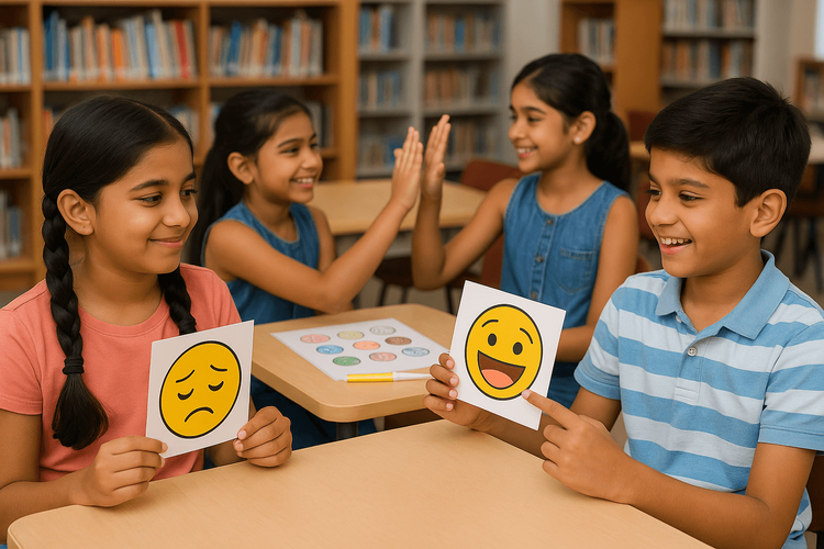 Classroom activities such as group projects, storytelling, and peer-sharing sessions help children learn teamwork, empathy, and collaboration. Teachers can introduce emotion charts, reflection corners, or “cool-down zones” where students can reset their emotions more positively.