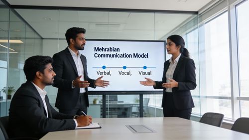 The Mehrabian Communication Model explains how people interpret emotional messages. It suggests that when words, tone, and body language conflict, people rely more on tone and nonverbal cues than on words alone. This insight is especially relevant for professionals who want their messages to sound confident, authentic, and persuasive.