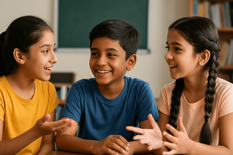 Group conversations strengthen articulation, logic, and confidence.