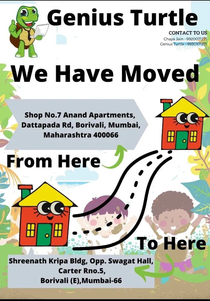 Genius Turtle is an early-learning and activity-based education brand operating in Mumbai with multiple branches. The Borivali East centre is located near Swagat Hall, making it accessible for families in the surrounding residential areas.