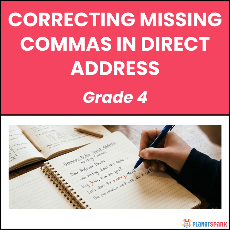 Grade 4 English Worksheet on Direct Address Commas
